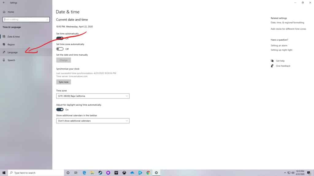 3rd: Once you are in, click on the Language tab on the left of the screen.