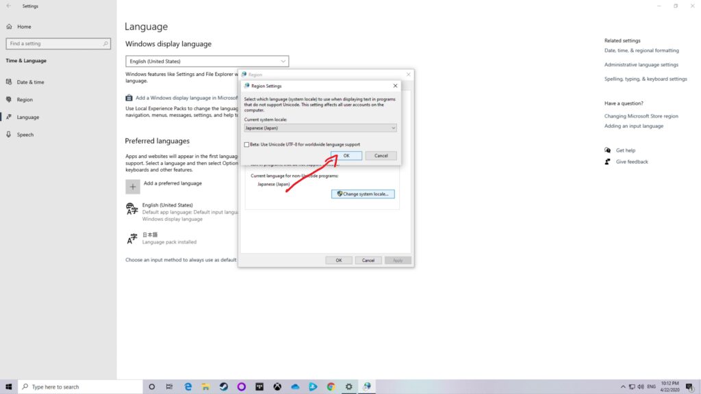 3rd:Yet another box will pop over the preexisting one. Click on whatever your system's language defaults to and change it to Japanese.